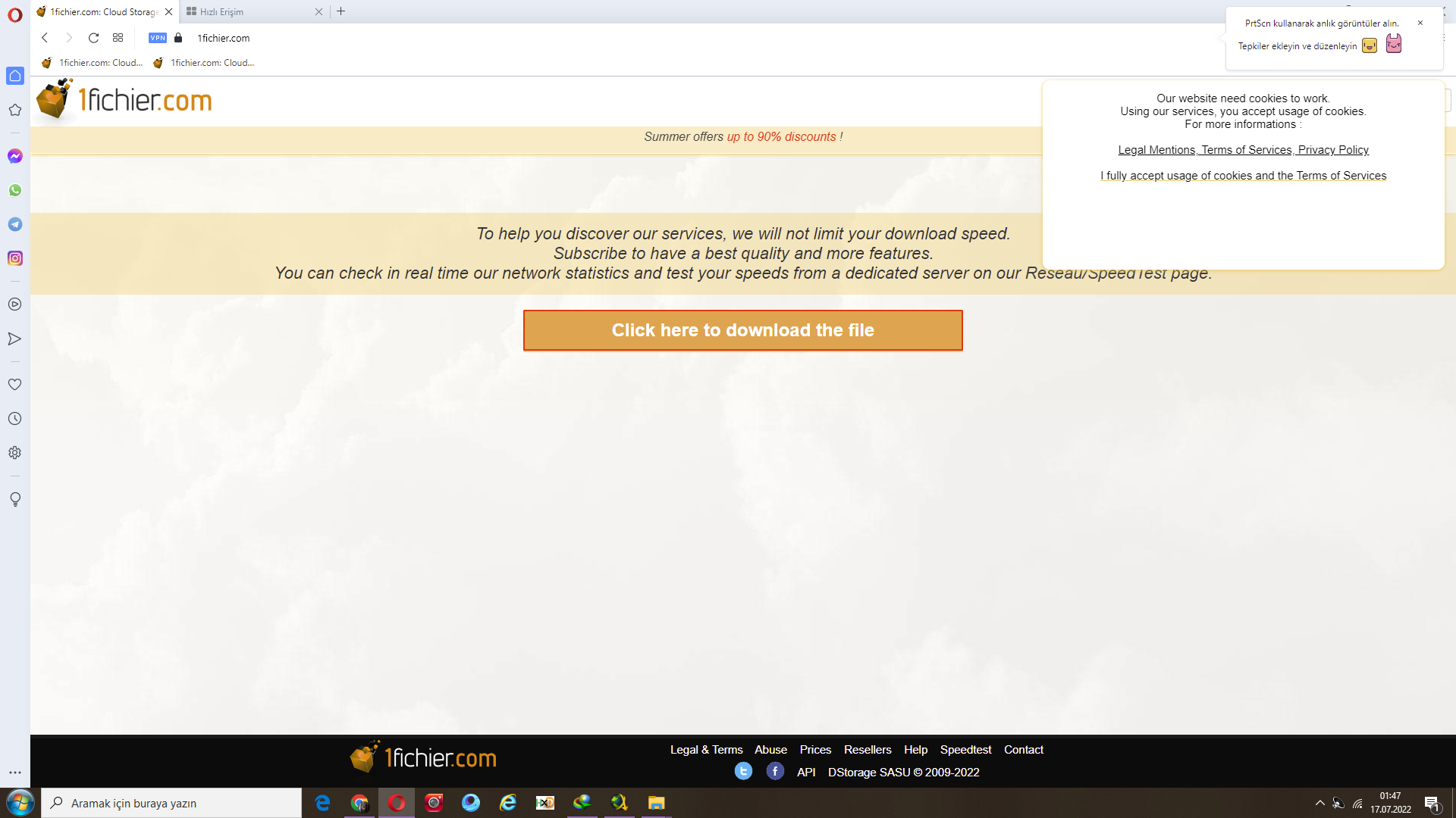 1fichier sitesi download için indirmeye sınırlama koymuyor yani sizin internet hızınız kaç ise ve ne kadar sağlıklı ise işte o maksimum hızda indirme sağlıyor çünkü dediğim gibi sınırlama yapmıyor o yüzden hızlı oluyor. O bahsettiğim 90 MB/sn hızı PC den konsola 80 GB oyunu Remote PKG installer ile atarken alacağım ortalama hız. Ama oyunu indireceğim ortalama hız ise 112 MB/sn olacaktır. 🙃