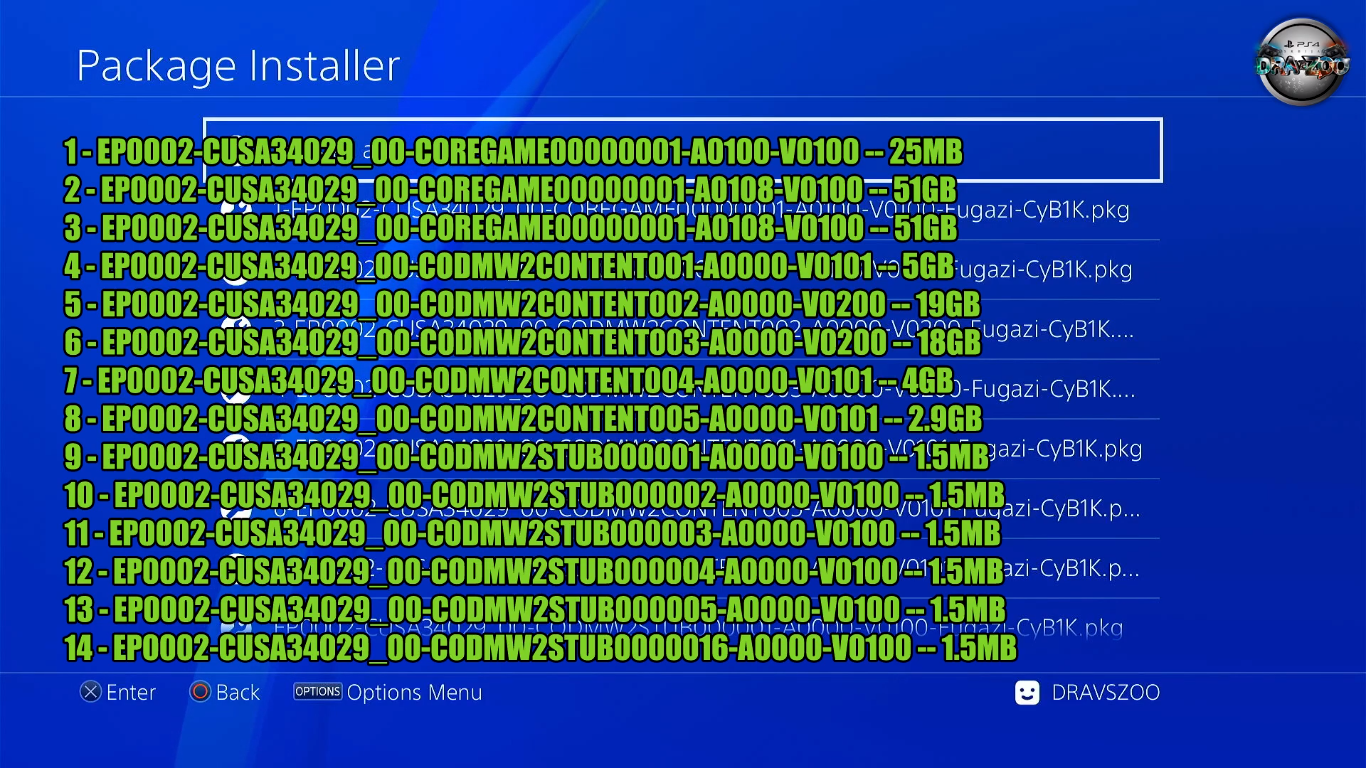 (@CyB1K) : ENGLİSH: Released together with Fugazi! Tested on 5.05 and 9.00! After a lot of issues, lot of testing, lot of work, lot of demandings and lot of everything. Here it is. You will have to READ this if you want things to work, CODs are special requirement games. You NEED all the DLCs for it to work, it checks for ownership in them! Although i patched most of the annoying stuff its still a pain in some cases. FIRST thing you have to do is DISABLE the streaming textures (Sorry tried to disable it via code but it wasnt possible), this will softlock the game if NOT done! To start campaign with internet connected simply cancel all the joining sessions and login to… and then press go offline. If you dont have internet connected spam X until it tells you to go offline (Thanks Lapy for his struggle and testing of this, i did patch the internet requirement but its still a pain). You will be signed in as CyB1K in the campaign! DO NOT ask me for a newer update, it has new keys and i dont have access to them. DO NOT ask me for another cusa i wont do it! Meri Kurisumasu!