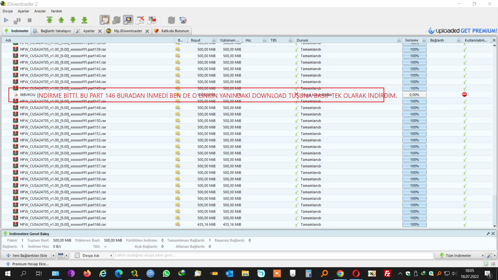 Eğer eksik olan linkler yine de kalır ise onları yine bu indirme sayfasında yanlarındaki Download tuşların basarak eksik olanları tek tek de indirebilirsiniz. Deneyin bakalım bu şekilde tüm linkleri yakalayacak mı? Ben test ettim bende yakaladı ondan yazdım zaten.